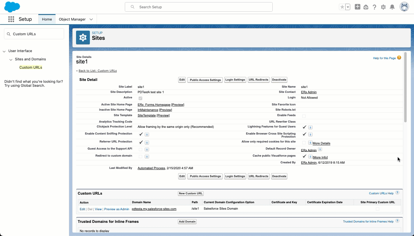- On the Site Details page, scroll down to the Site Visualforce Pages