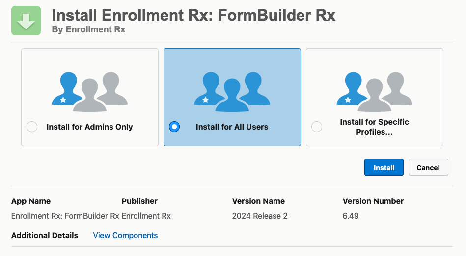 If you are upgrading to the newest release of FormBuilder Rx, use the package installation links below.