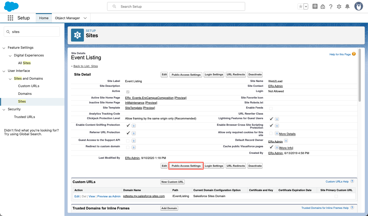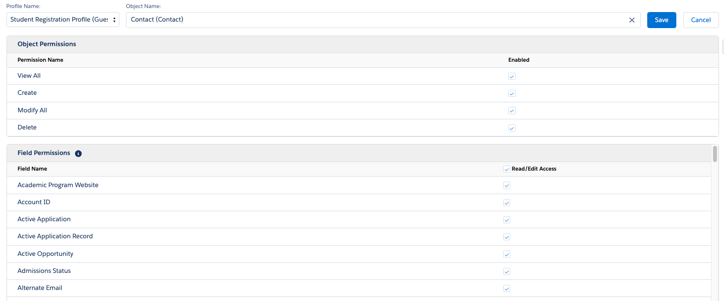- Select the Site Guest User Profile under Profile Name and Contact under Object