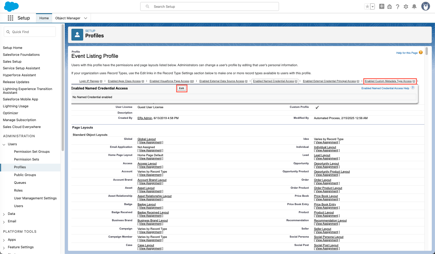 - Starting with Enabled Custom Metadata Type Access, hover over the link and click