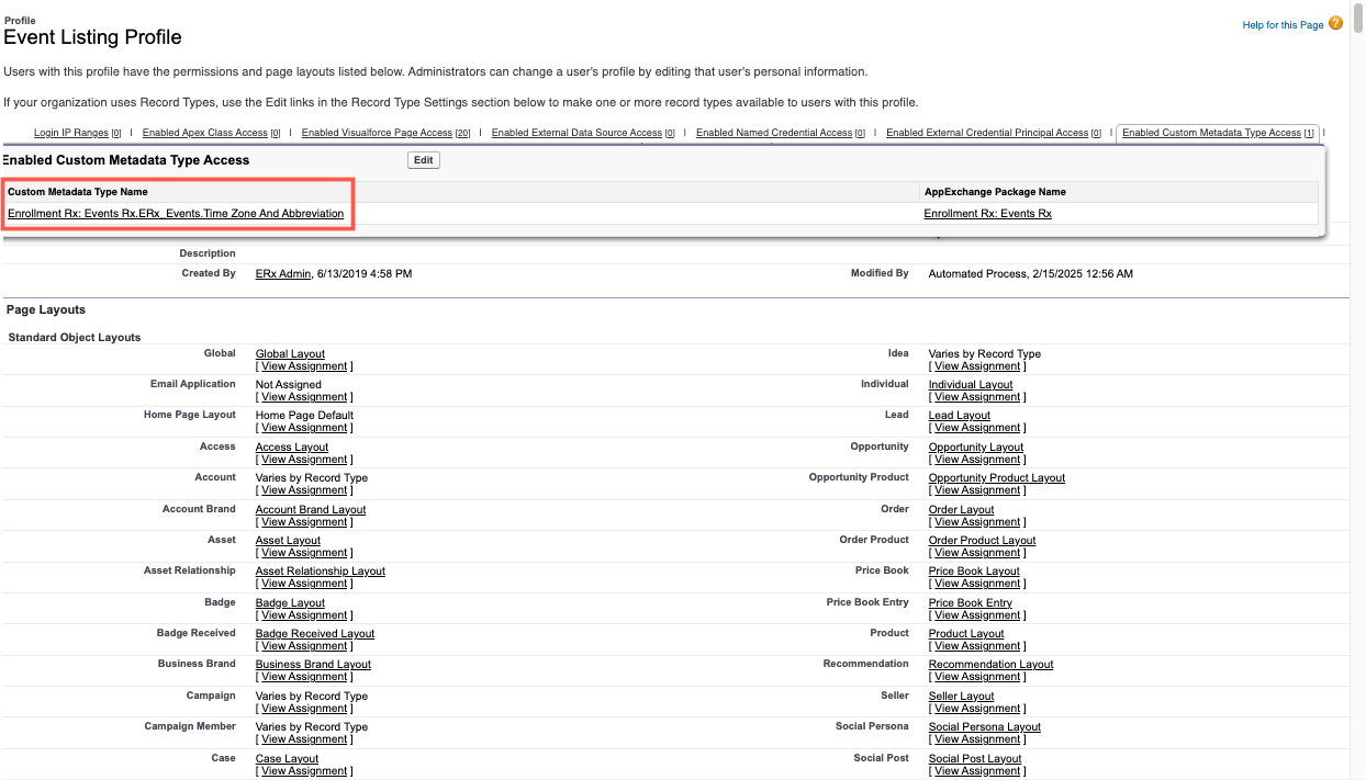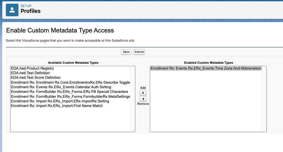 options for Enabled Custom Metadata Type Access and Enabled Custom