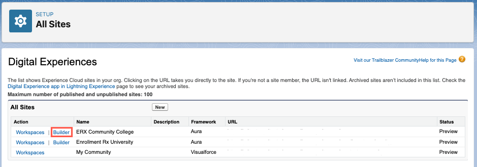 - Go to Setup and search for All Sites in the Quick Find box. Click on All Sites when it appears.