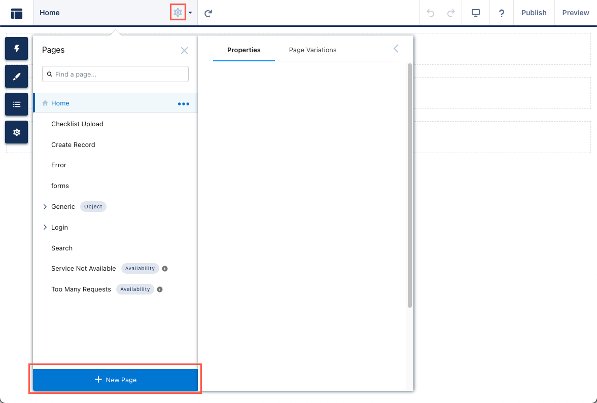 - Click the Home gear icon (labeled as "Page Properties") and then click the