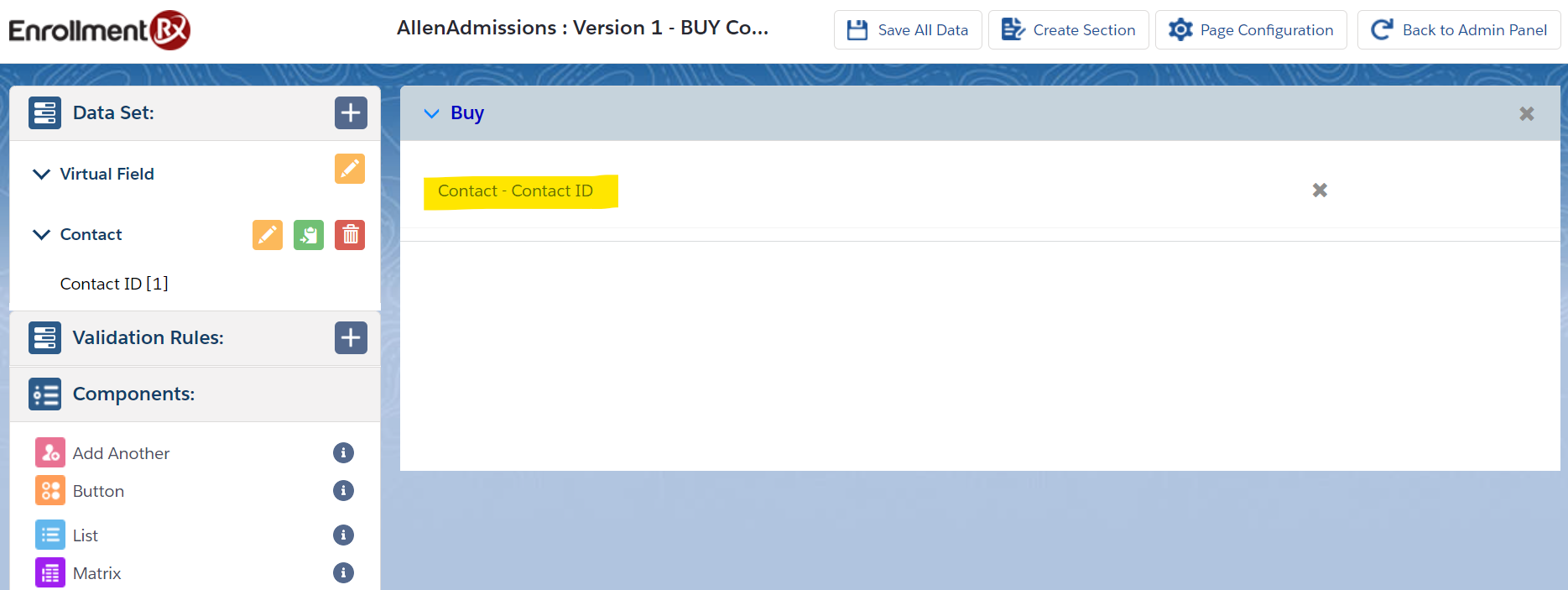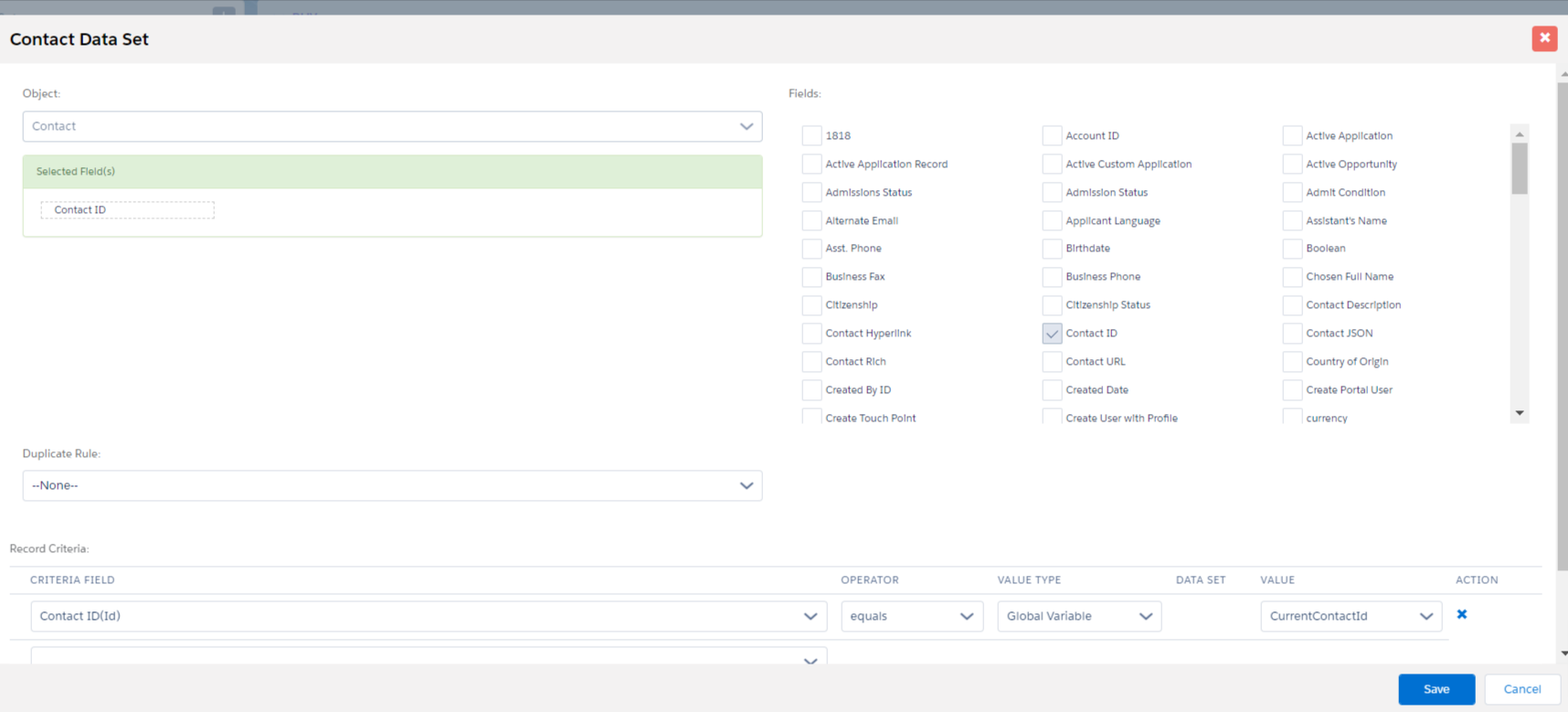 - Condition: Contact data set - Contact id - field - not equal - blank