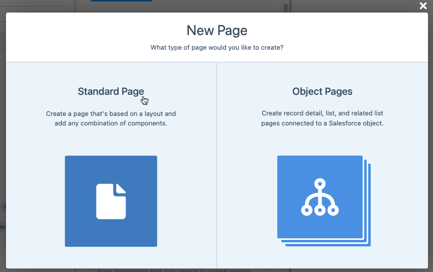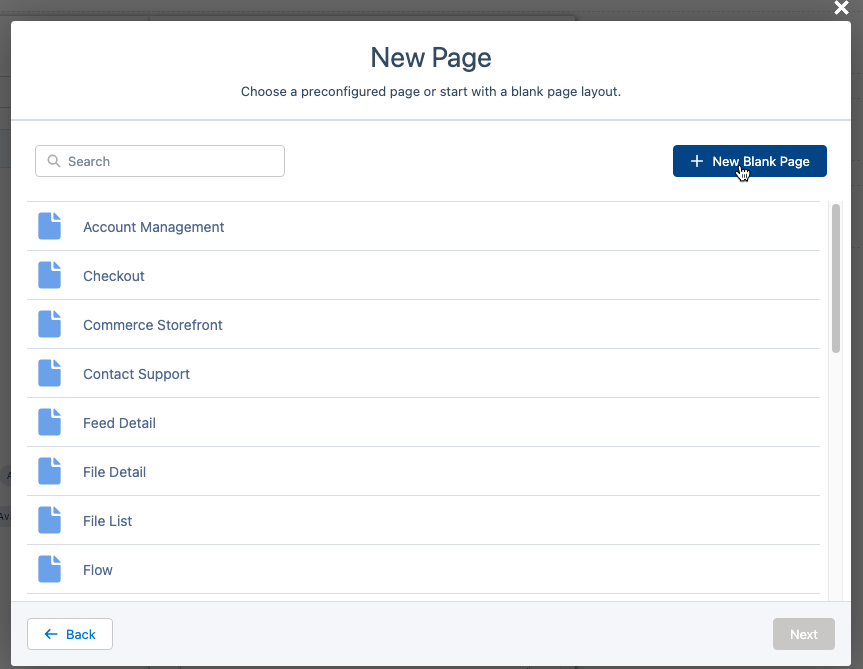Note:The Flexible Layout in Experience Builder gives you a responsive web page layout. - Enter a Name and URL for your page and click the Create button