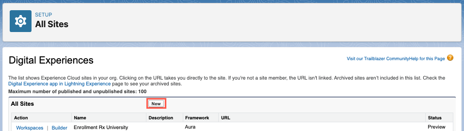 - Go to , search for All Sites in the Quick Find box and click the link when it appears