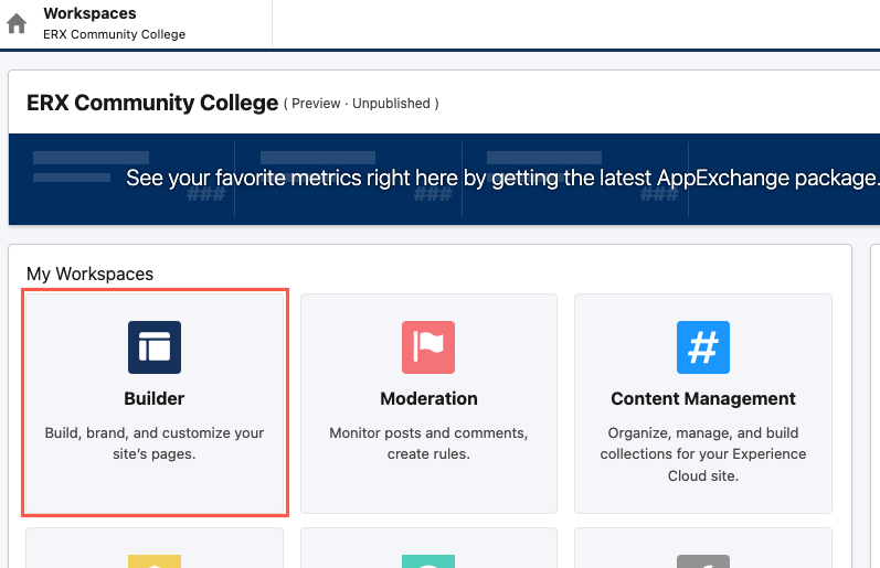 - After creating the Community you'll be sent to the Workspaces page. Click