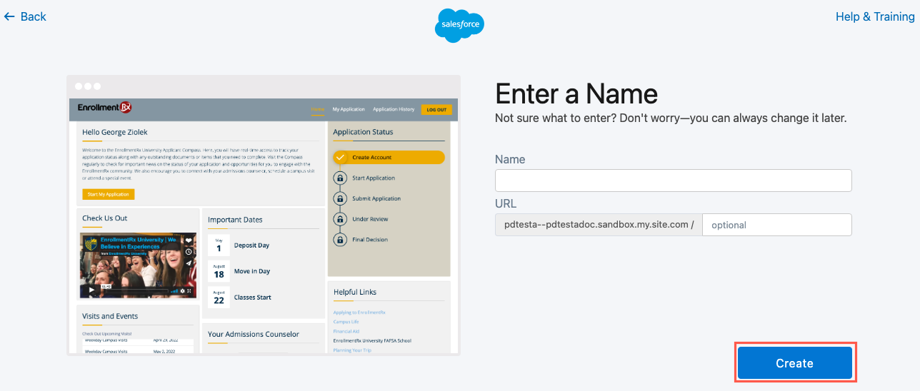 - Add the Community Name and URL (the URL is an optional step at this point; you can add it later)