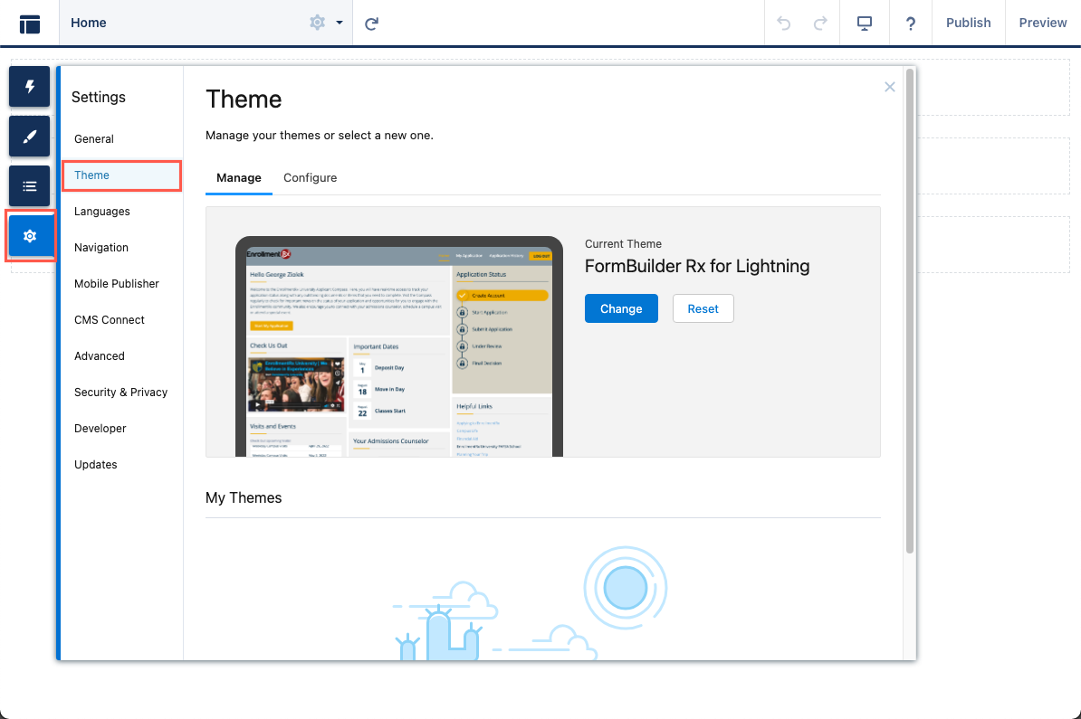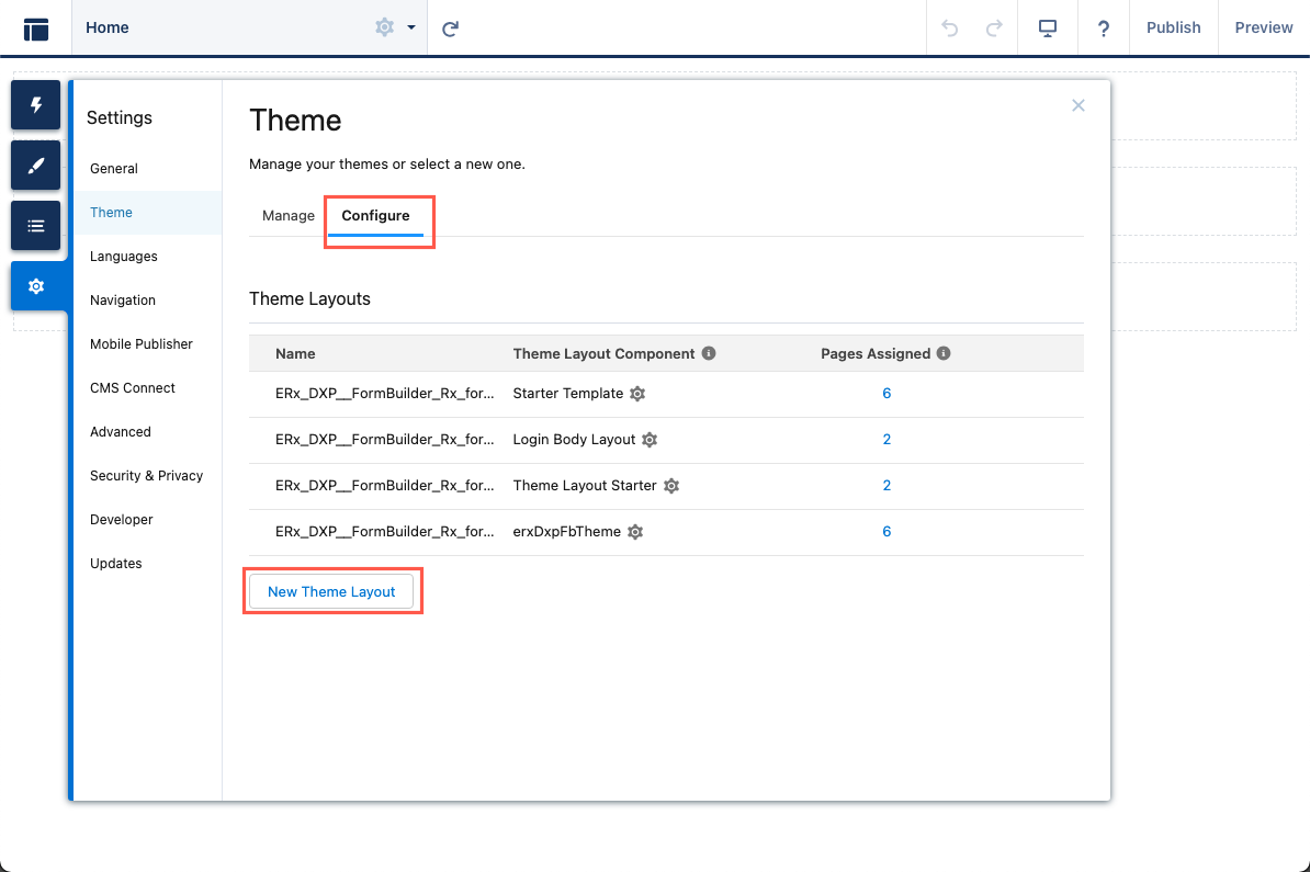 To map the DXP theme to the Home Page for the Default template, follow these steps: