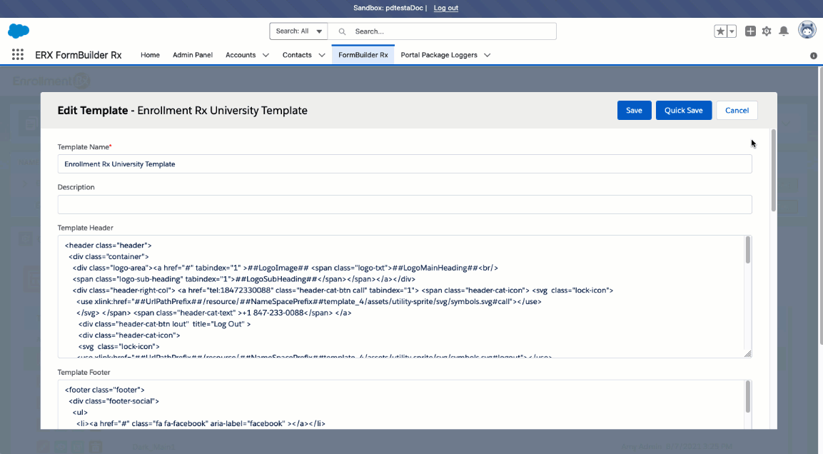 - Navigate back to your FormBuilder Environment and click the Template Builder subtab.
