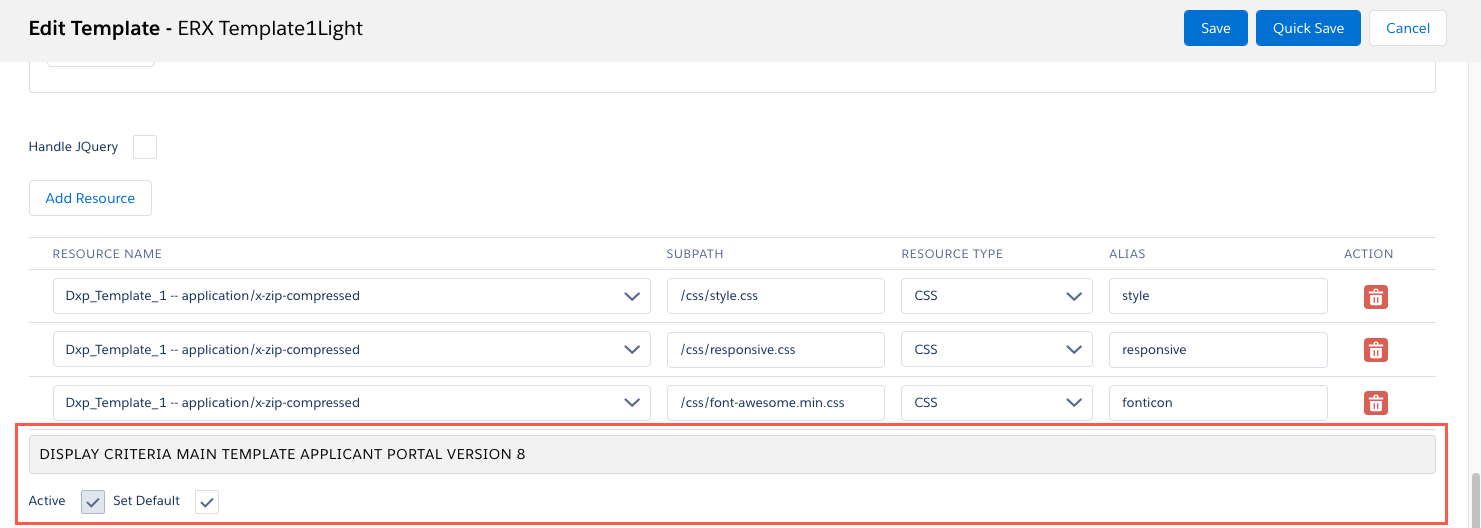 - Scroll to the bottom of the template configuration dialog. This is what you'll see: