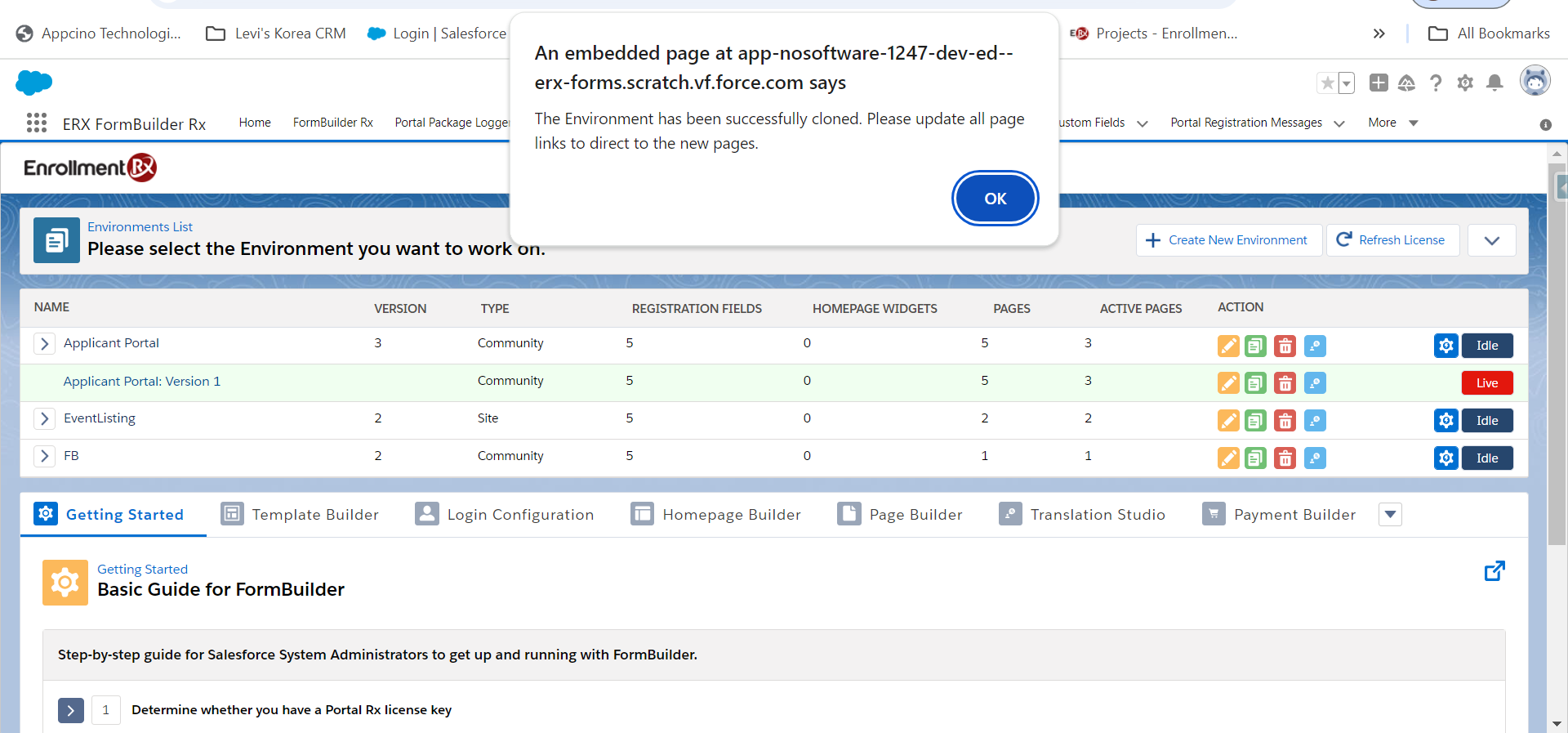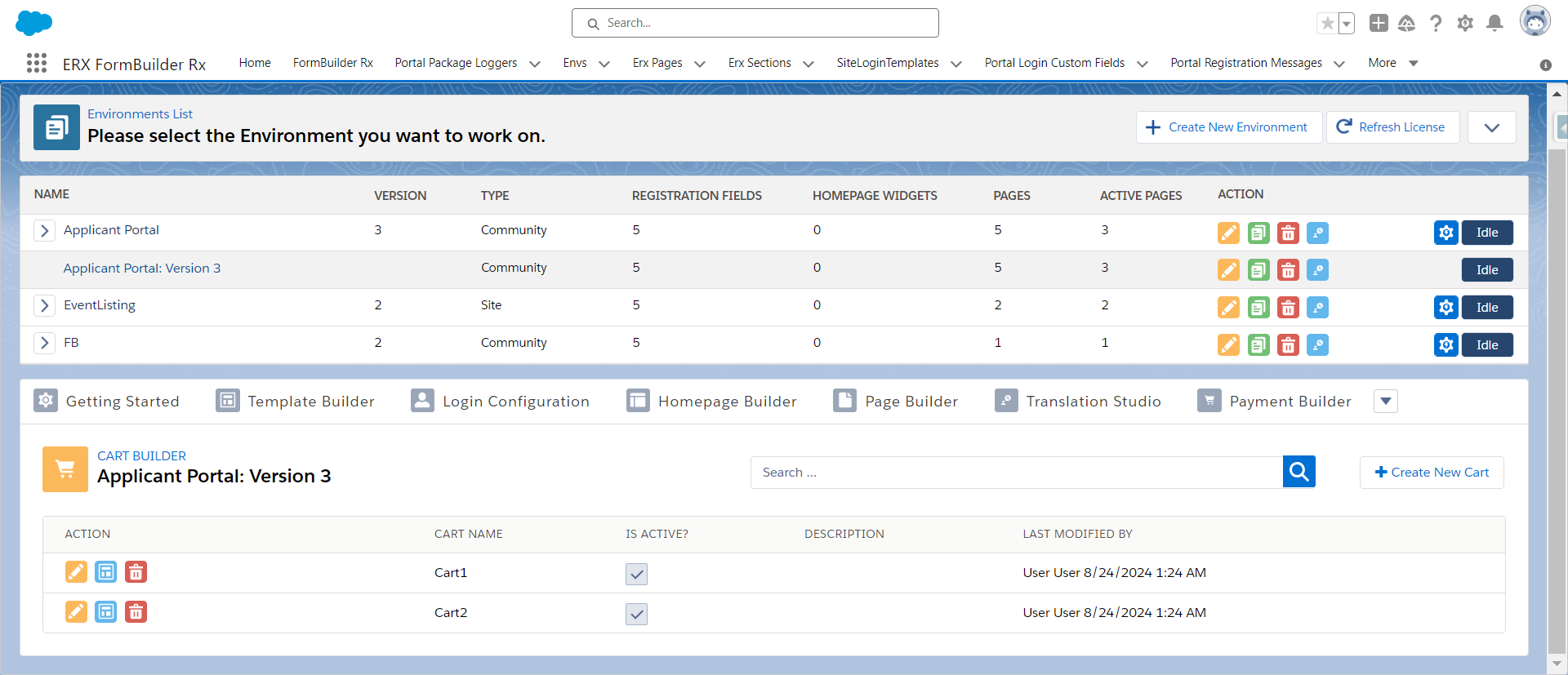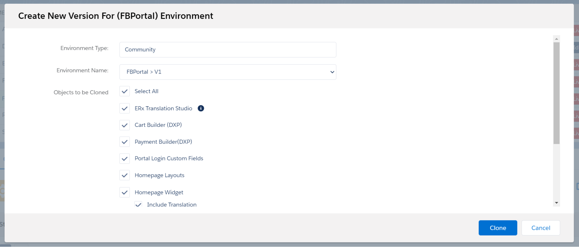 - You can clone ERX languages, translations, Cart Builder, and Payment Builder during the Environment cloning process.