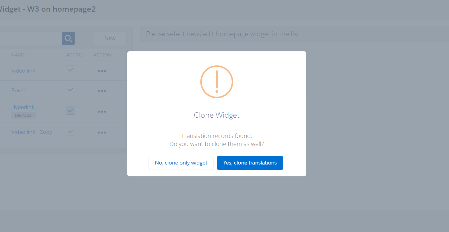 - When you clone a Widget by clicking the Copy icon, the translations of