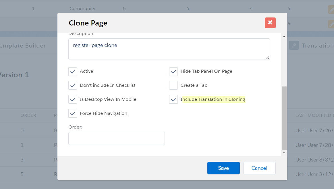 - In Page Builder, you'll see an option to include translations in page cloning with other components.