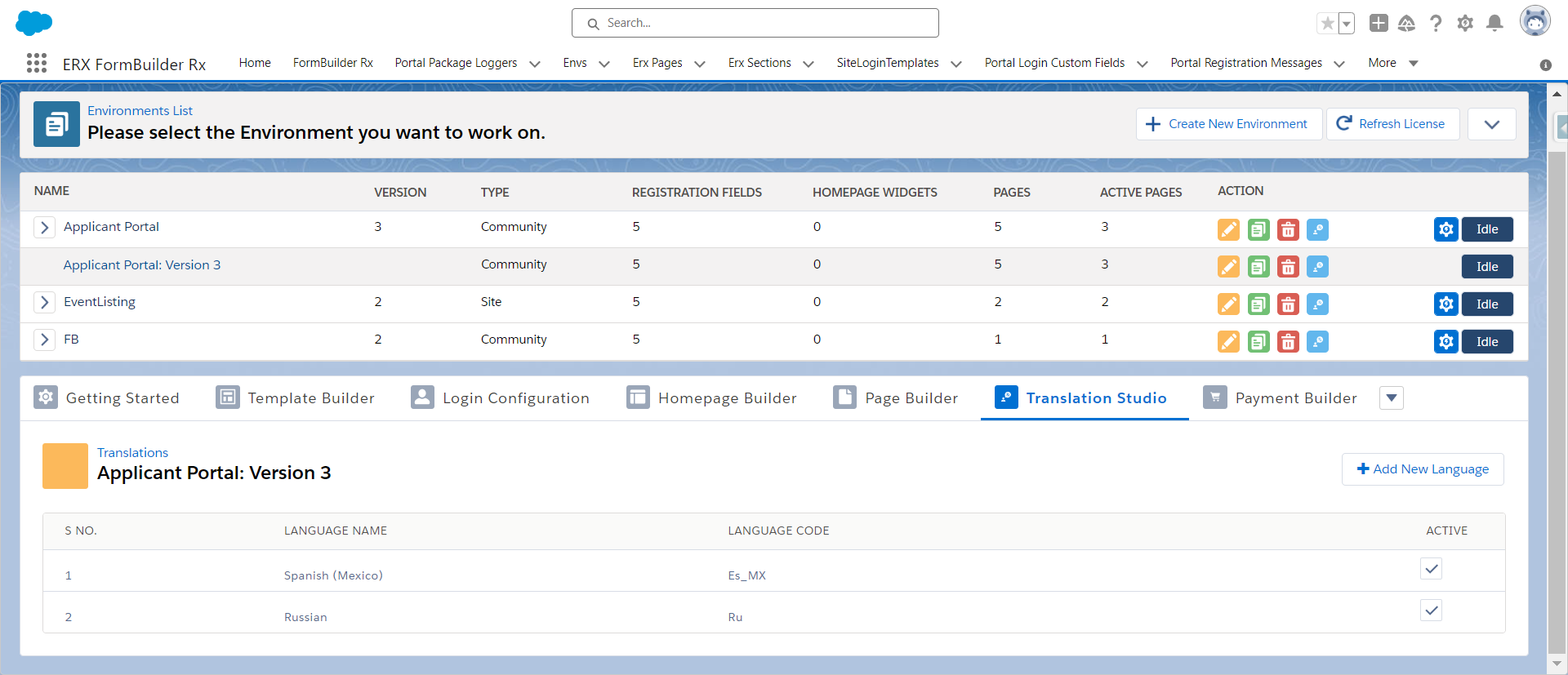 - The translation option is editable only when ERX Translation Studio and the respective clone option is selected.
