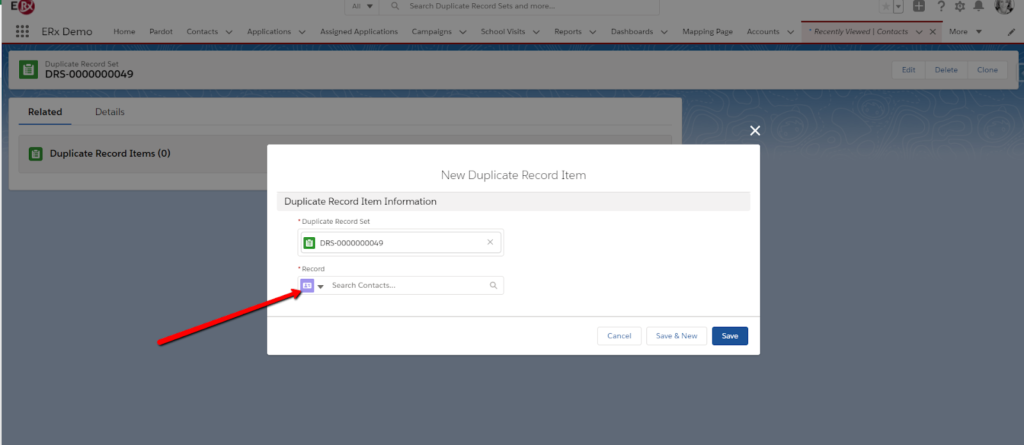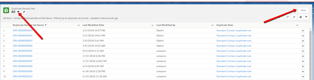 - Pick your desired duplicate rule, (note if you haven’t customized a duplicate rule you can choose the standard contact rule).