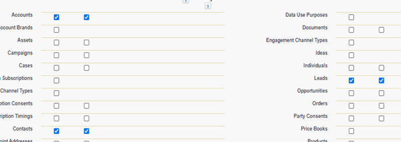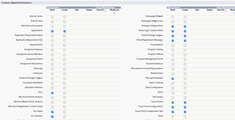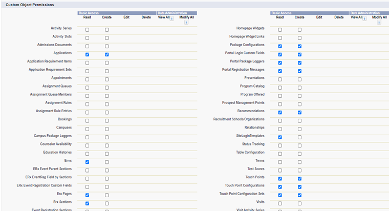 A new requirement for Spring ‘21 is that you must use “Allow Object Access” to give “Read” permission (which actually means “View All” in Allow Object Access) on several objects that are both Created and Updated (edited) in a single transaction by Erx Core, since Sharing Rules do not operate quickly enough after the Create operation to share the new records in time for the Update operation. These objects are Contact and Application (EnrollmentrxRx__Enrollment_Opportunity).