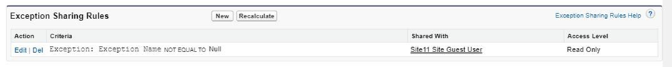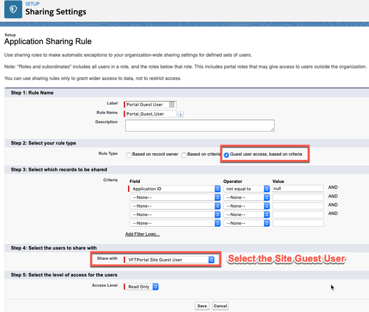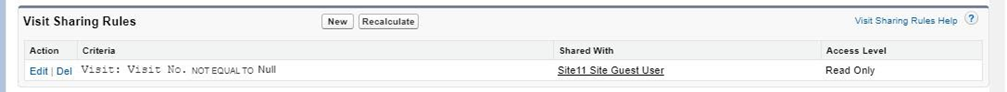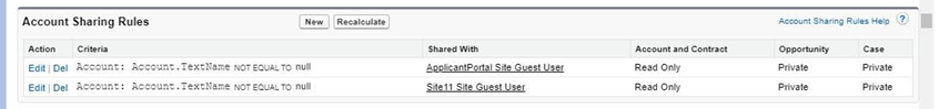 - Review the sharing rules for Each Site Guest User Profile as outlined below.