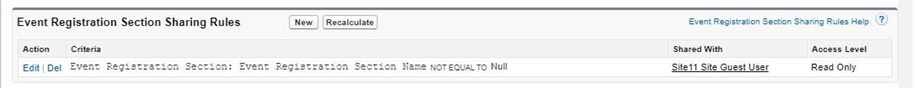 - Event Registration Section Criteria: Event Registration Section Name not equal to null