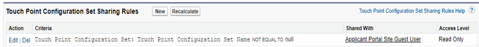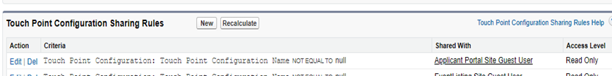- Applicant Portal and Site Forms: Go to Setup→Sharing Settings and scroll