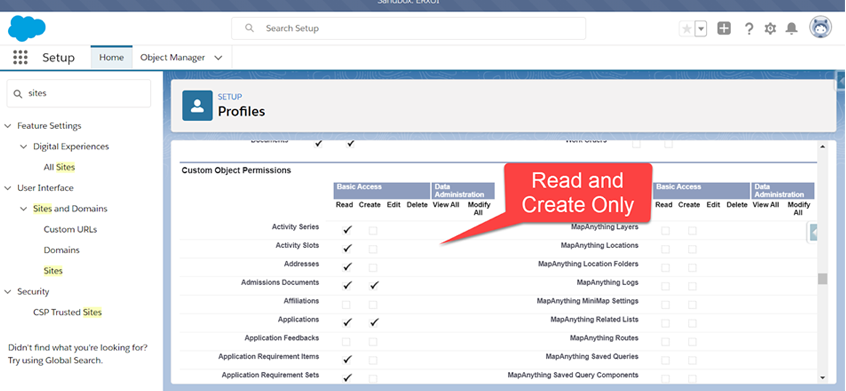 Only with these things done, can you use Enrollment Rx “Allow Object Access” functionality to give Edit/Delete/View All/Modify All capabilities to your unauthenticated sites.