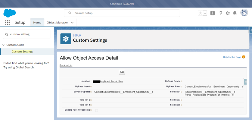 - Evaluate (and possibly update) your custom setting “Allow Object Access”