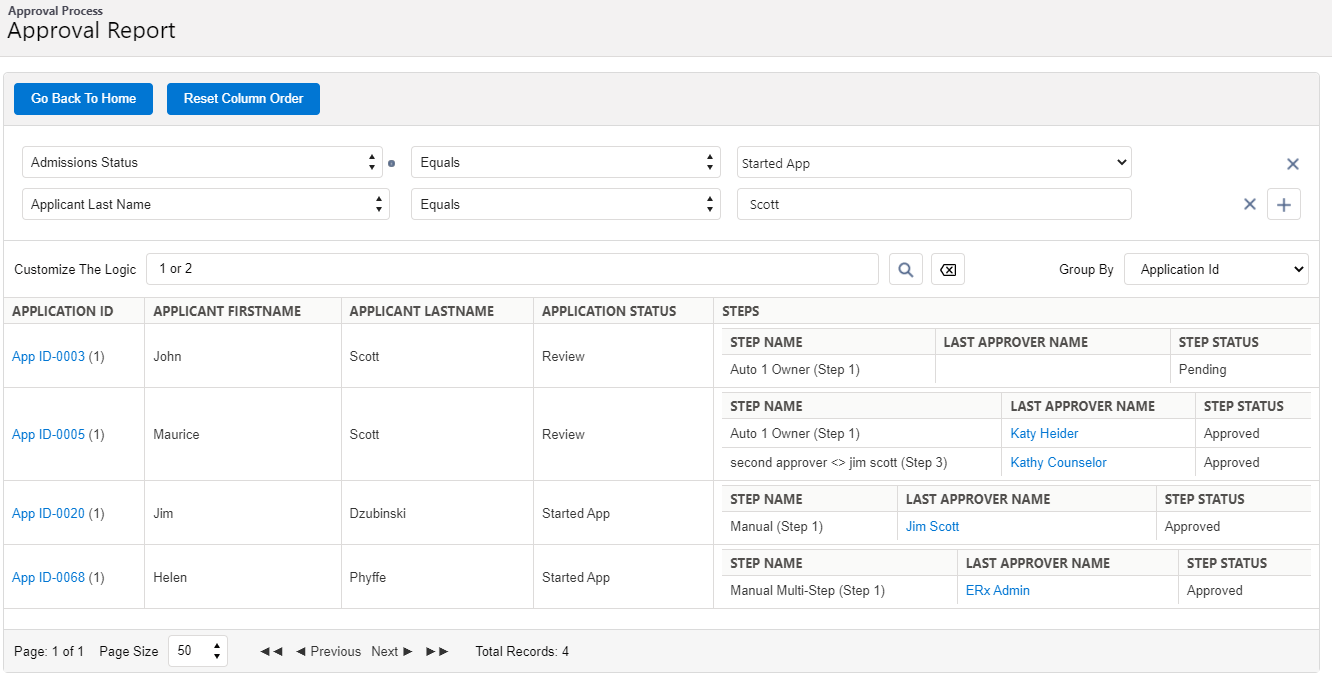 As of Summer ‘21, the Approval Process Dashboard is used to run reports for applications that are active within an approval process. You can set criteria to filter these reports and view at-a-glance details about the applications along with their status and step in the process.