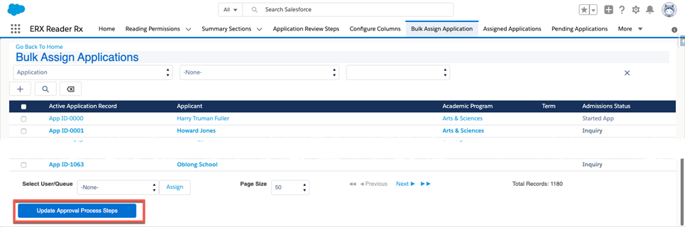 In order to solve a problem where the “Current Approval Process Step” did not always show the correct number, we have instituted a naming convention for Approval Process Steps that puts the number of the step into its name, at the end, in parentheses; for example “Admissions Counselor Review (Step 1)”.
