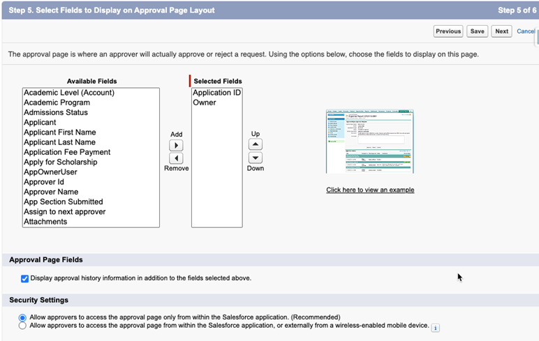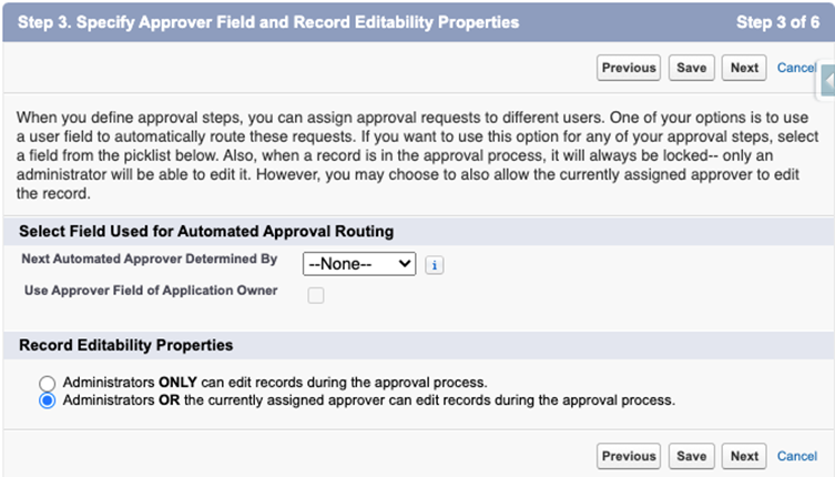 - Step 3 of the Wizard: Specify Approver Field and Record Editability