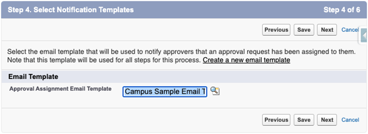 Use the email template you created per the section above on The Notification Email Template. This is an essential step. Reader Rx will not work unless you have a properly constructed custom classic email template. - Step 5 of the Wizard: Select Fields to Display on Approval Page