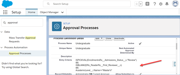 Alternatively, you may need to update the approval process criteria, depending on your situation.