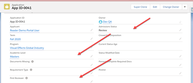In this example, the admissions status is correct (the first reviewer is blank, but