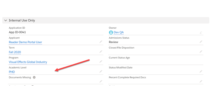 The record in question was assigned to the graduate queue, but had the Academic Level