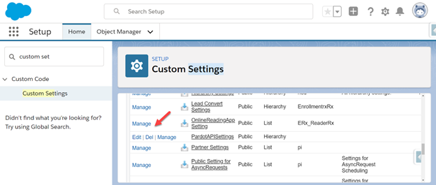 Navigate to the custom setting by going to Setup > Custom Settings (in the search