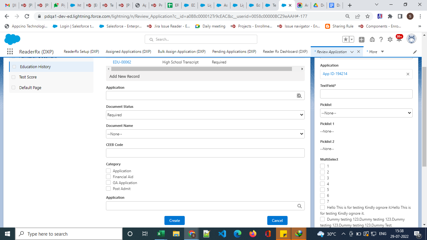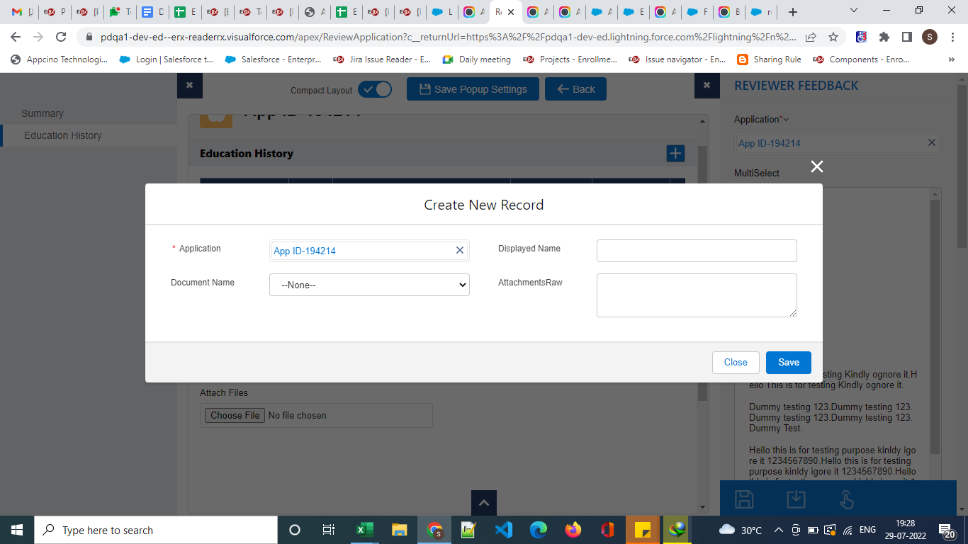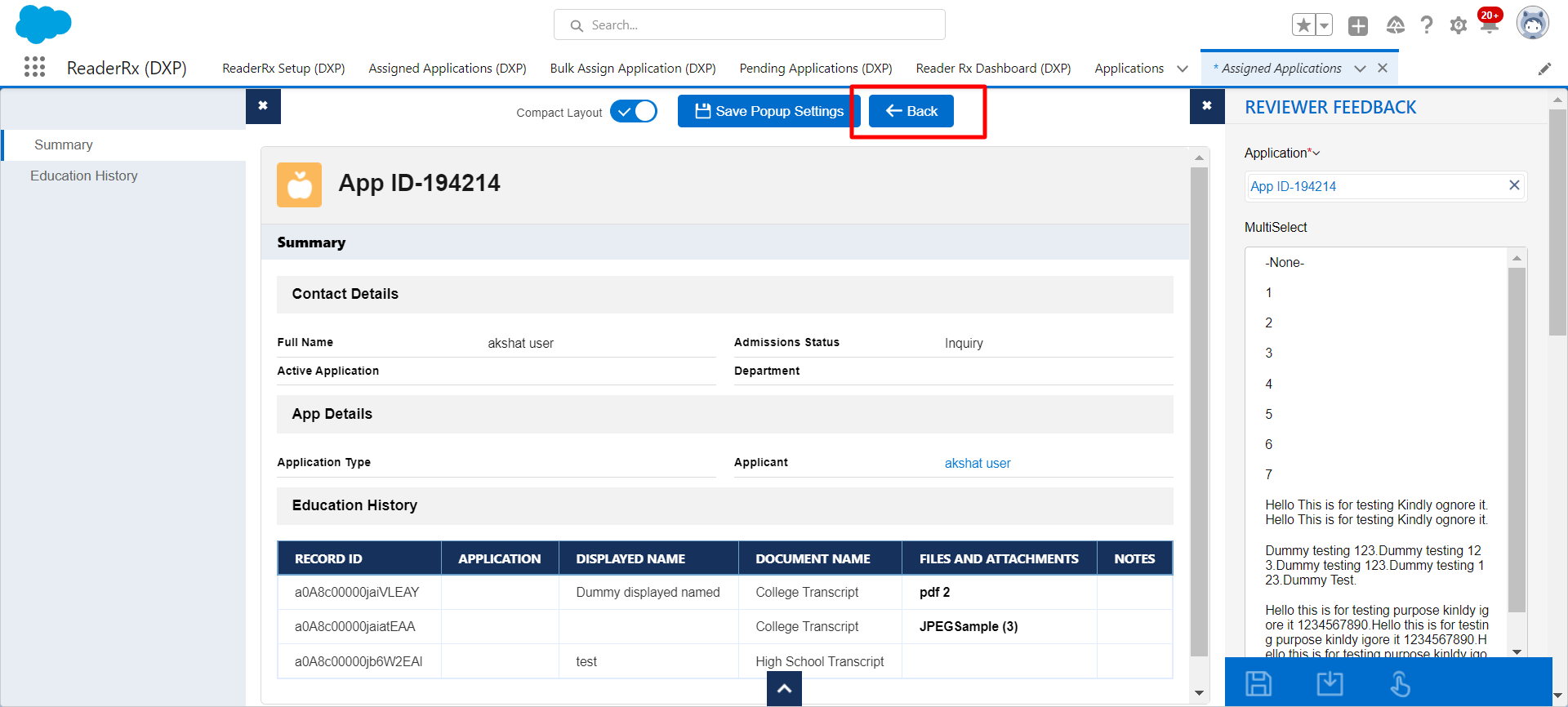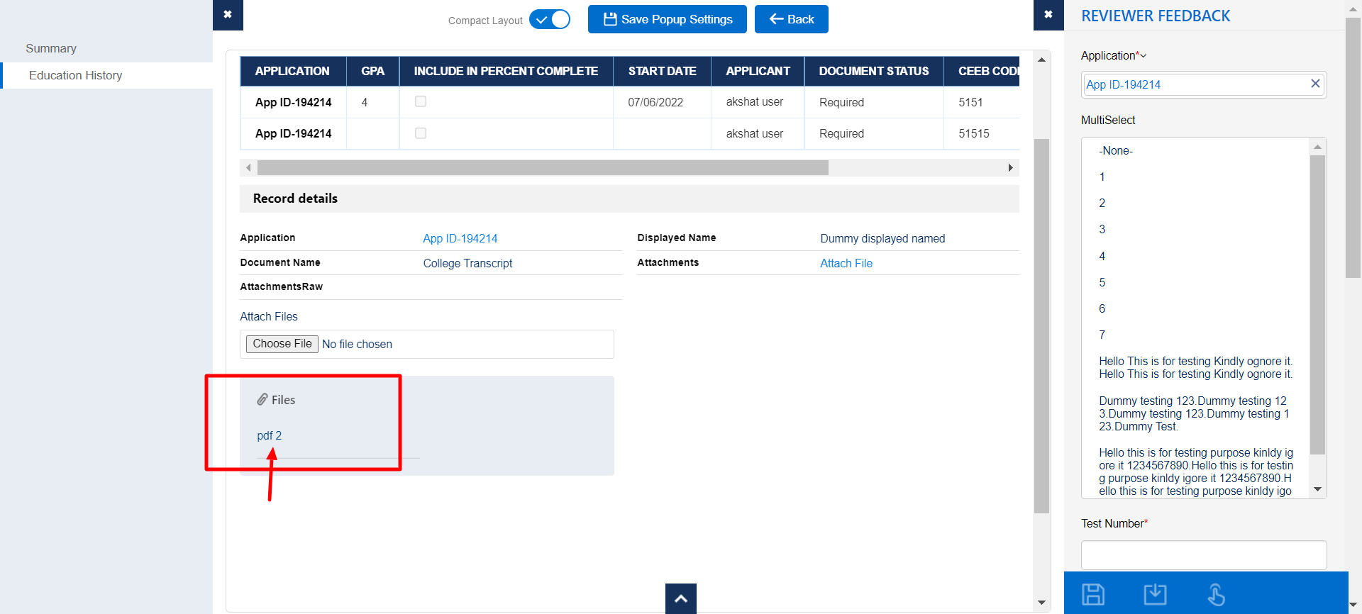 After clicking the Save button, a record is created in the Summary Section for the Education History object.