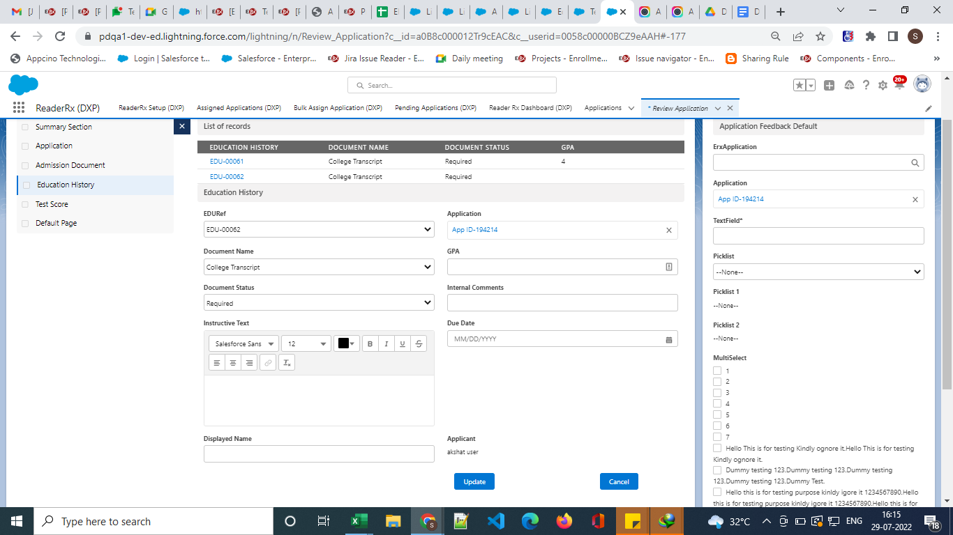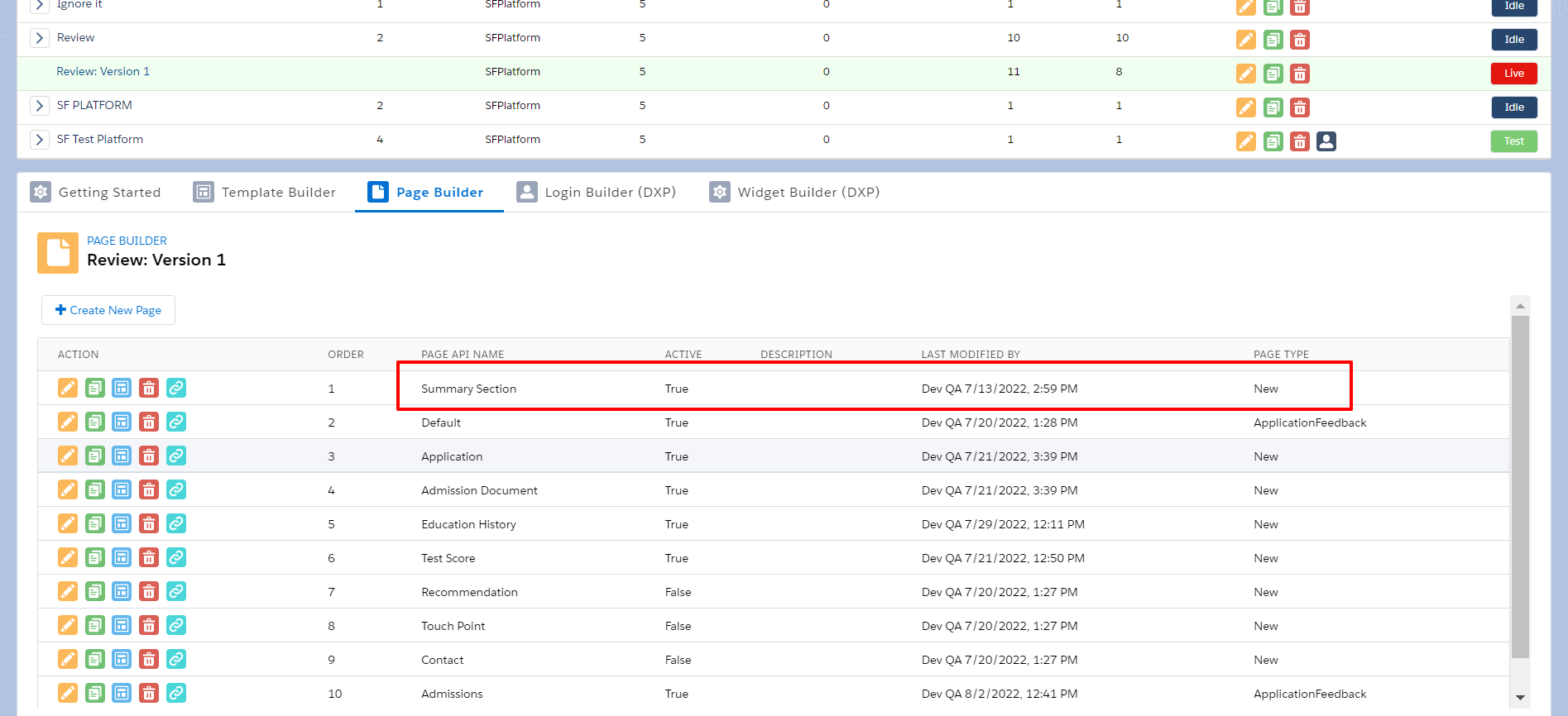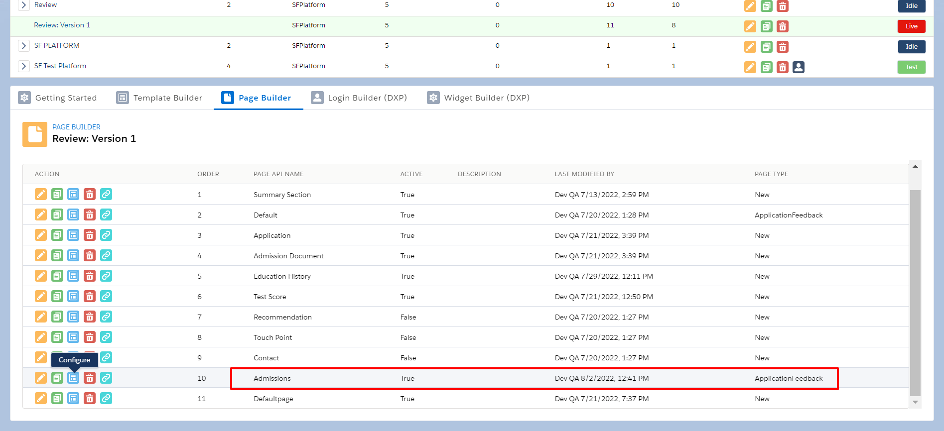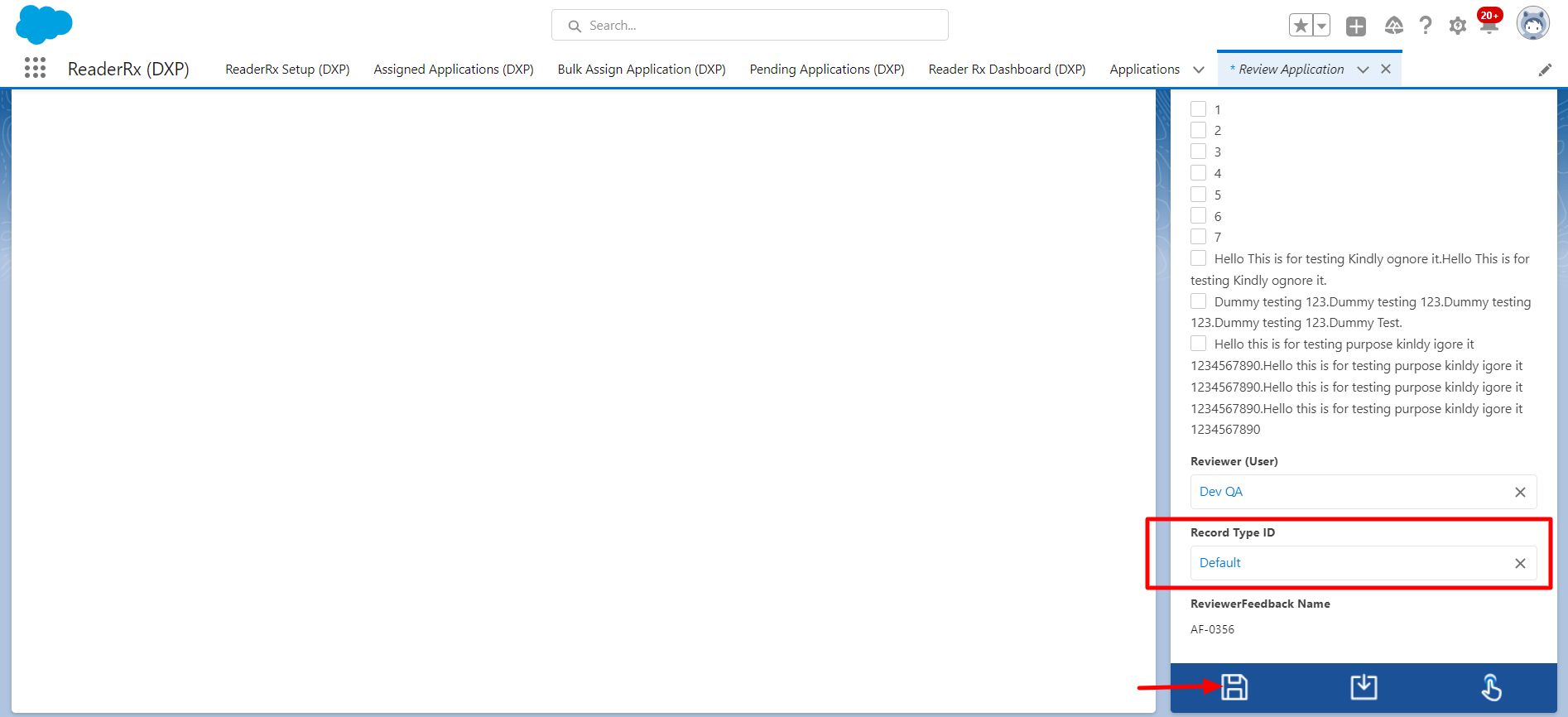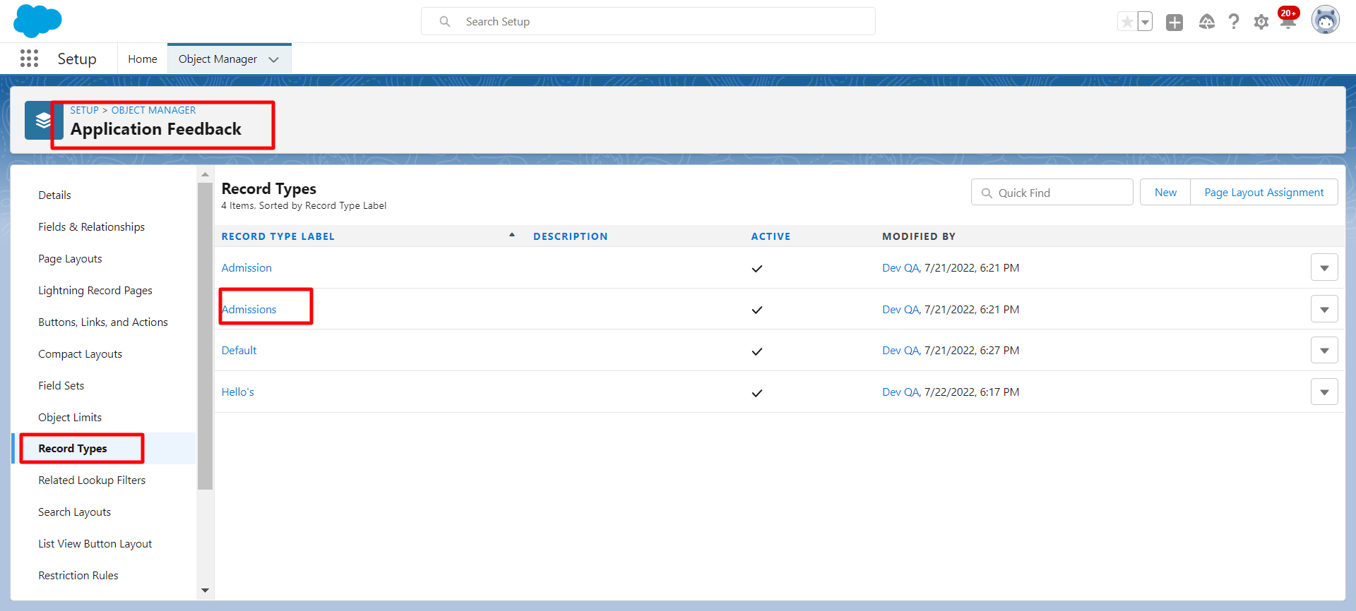 - Navigate to the FormBuilder Review Screen and change the Feedback Record Type from