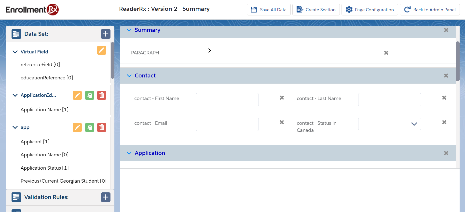- Drag and drop fields into the section according to the Data Set and click the Save All