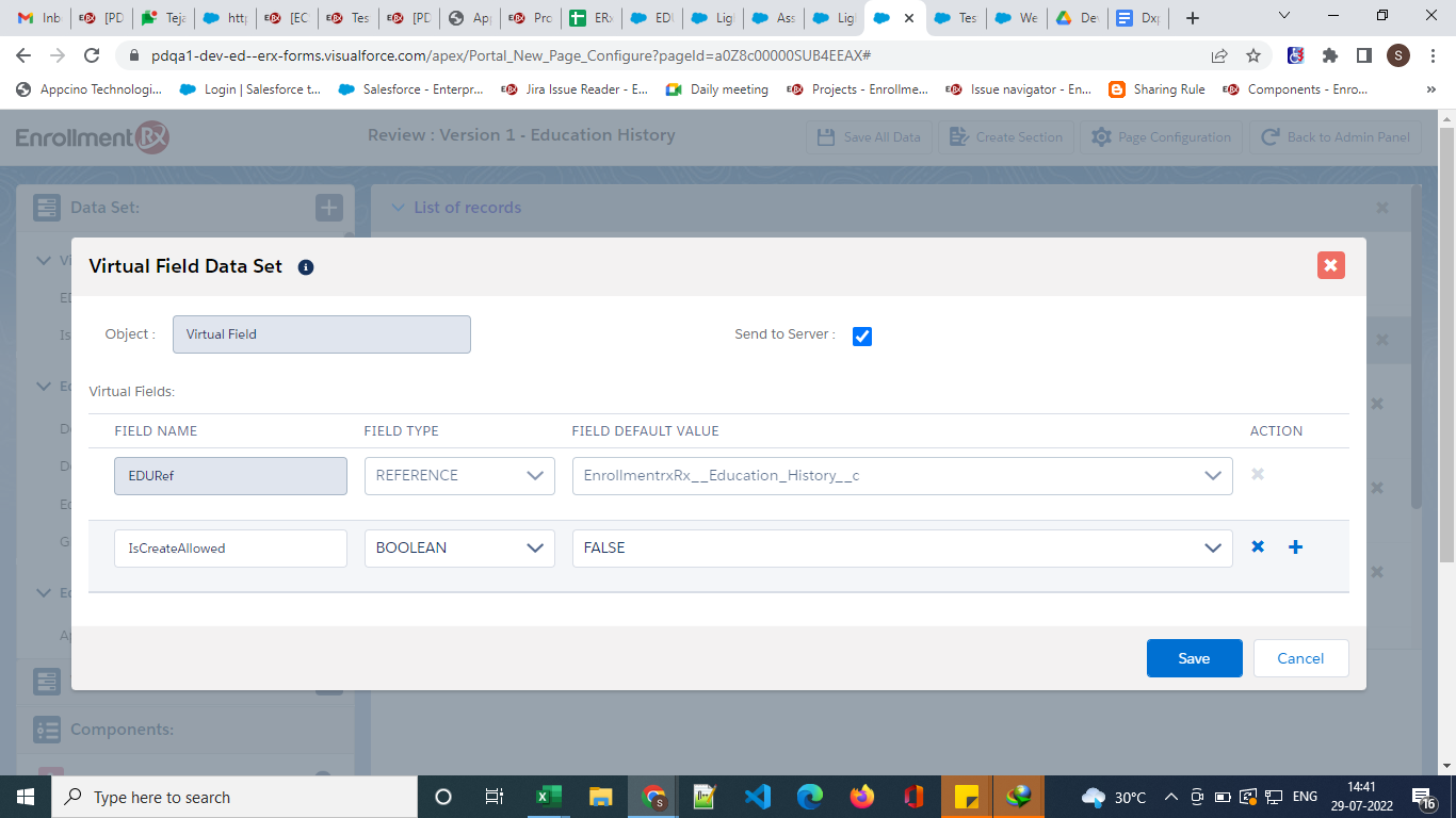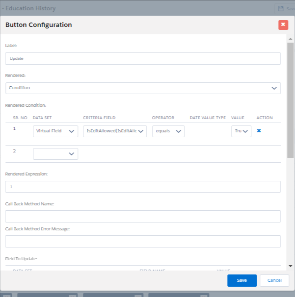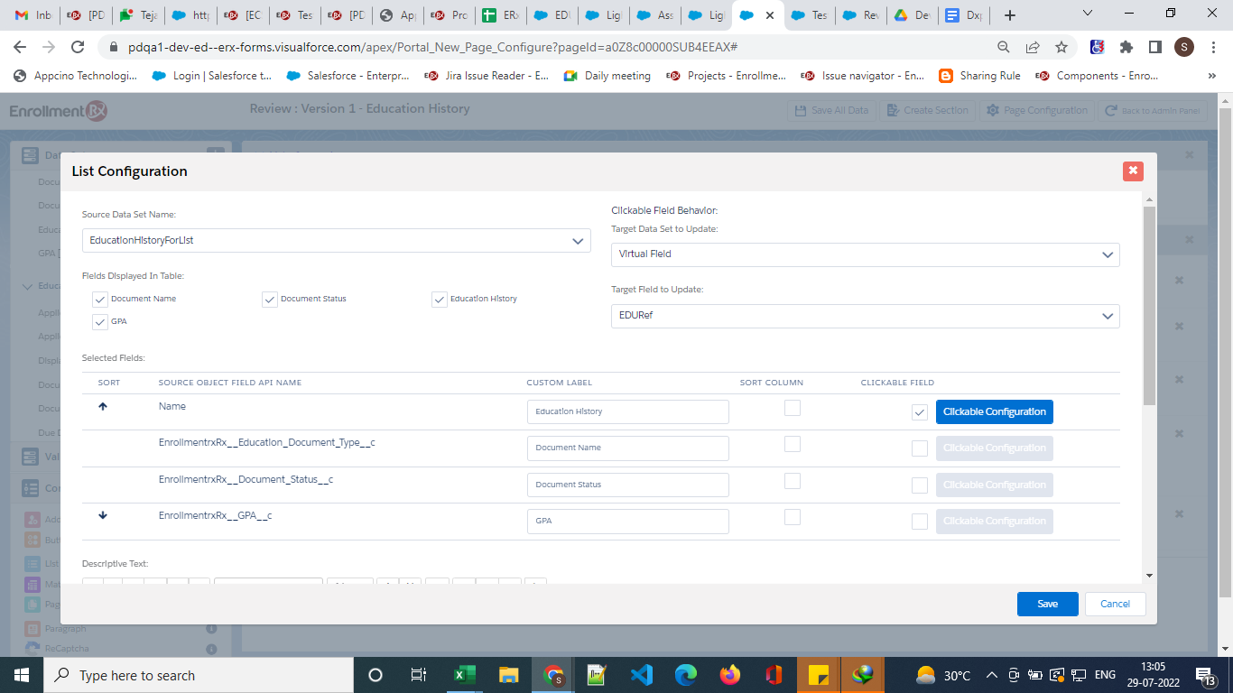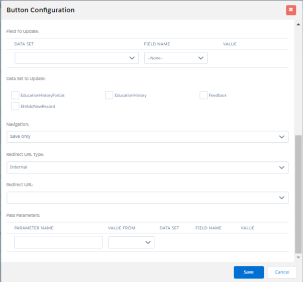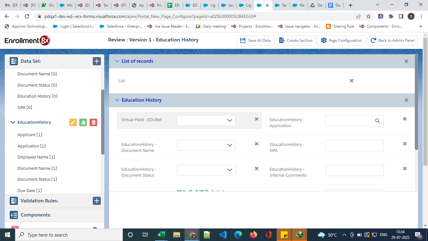 - Data Set creation & configuration: After creating a page, create two Data Sets on your object (e.g., Education History)