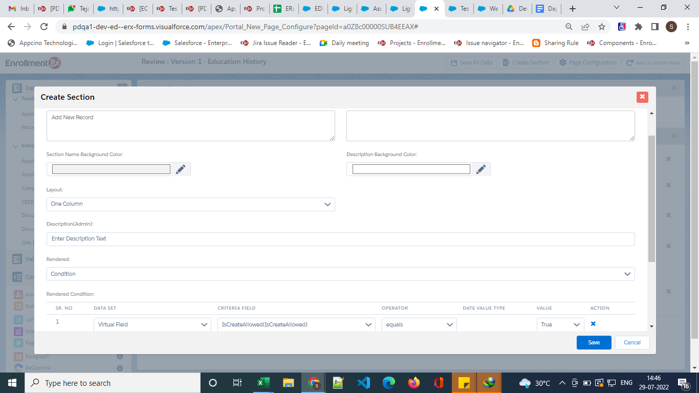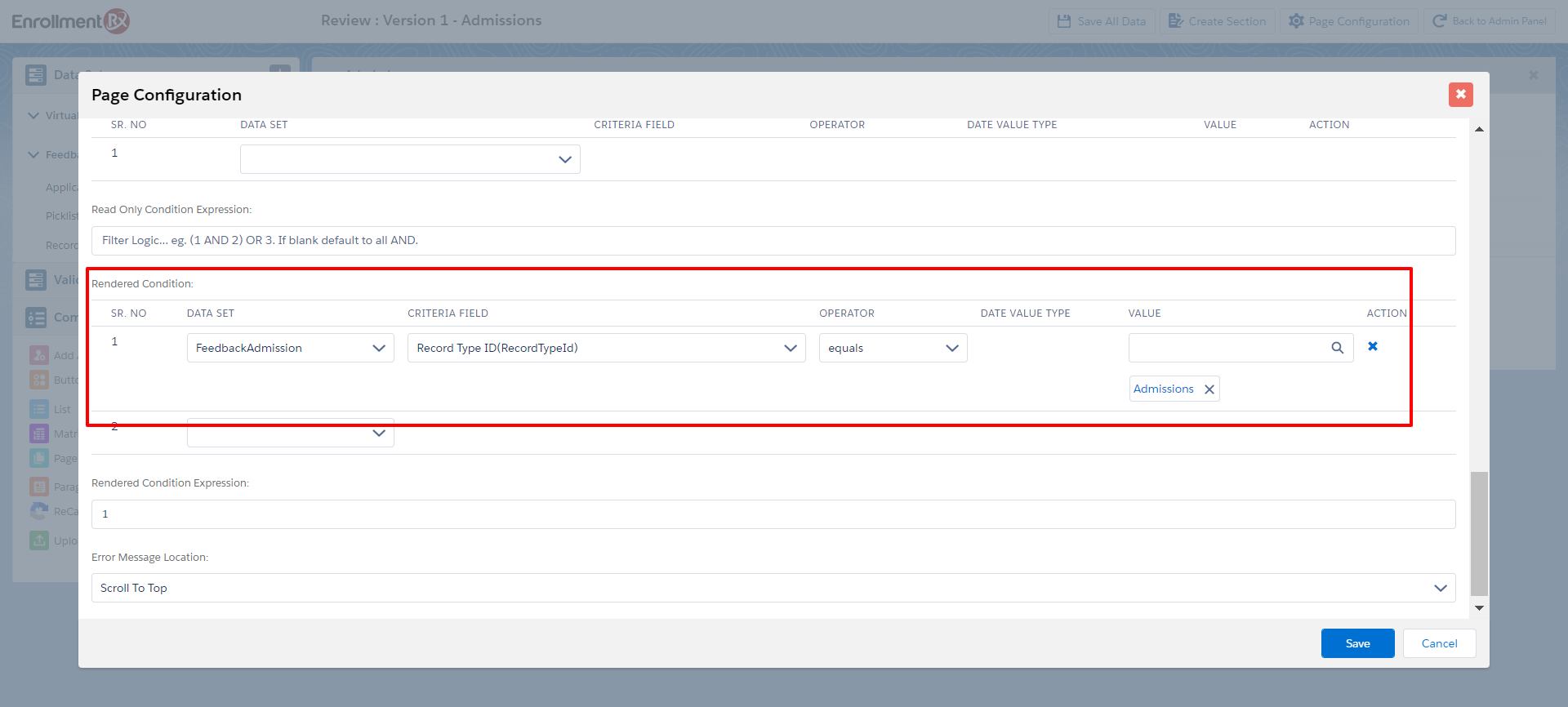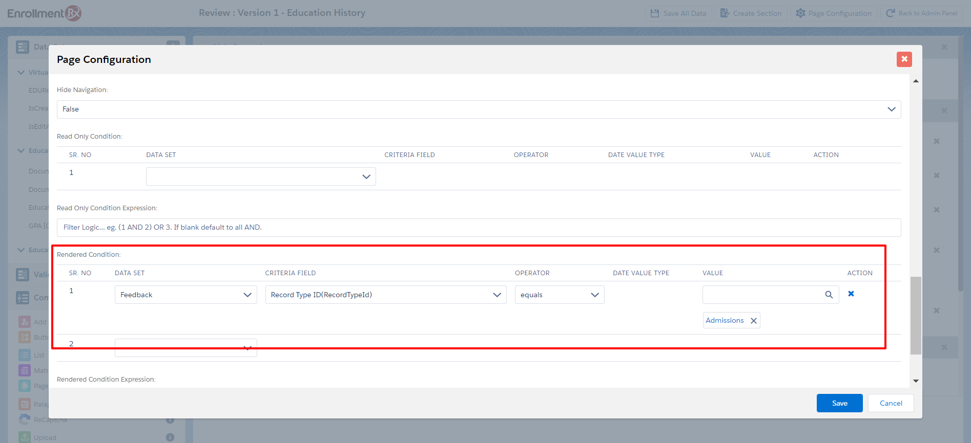 - Now set rendered criteria for the Application Review Step pages, which you will want to show according to the Feedback Record Type.