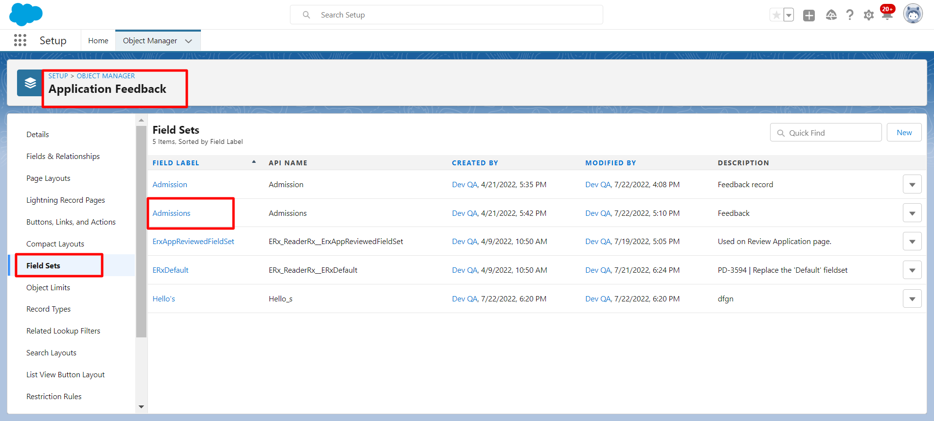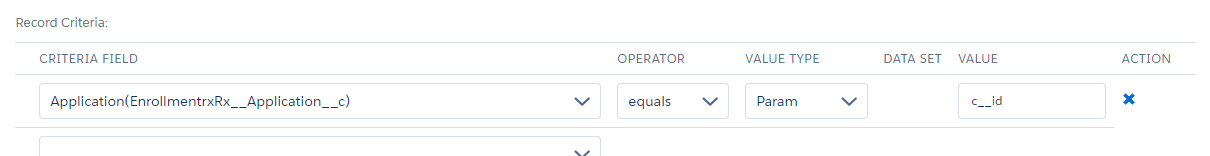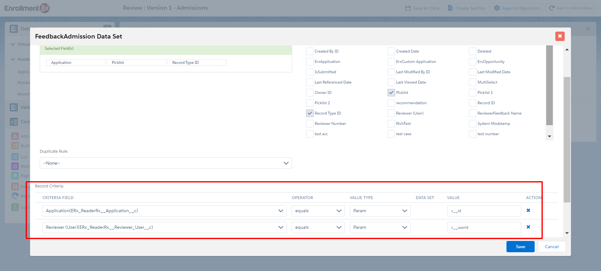 - Create a Data Set for an Application Feedback object and set Record Criteria as