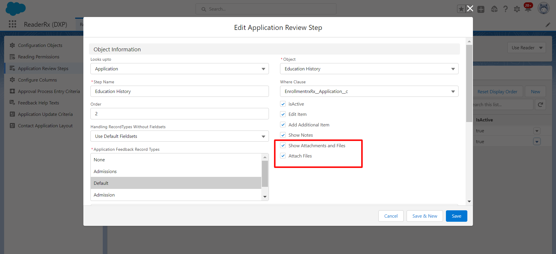 To enable the Edit Record feature from the Review Screen, check the "Edit Item" checkbox on the Application Review Step Record.