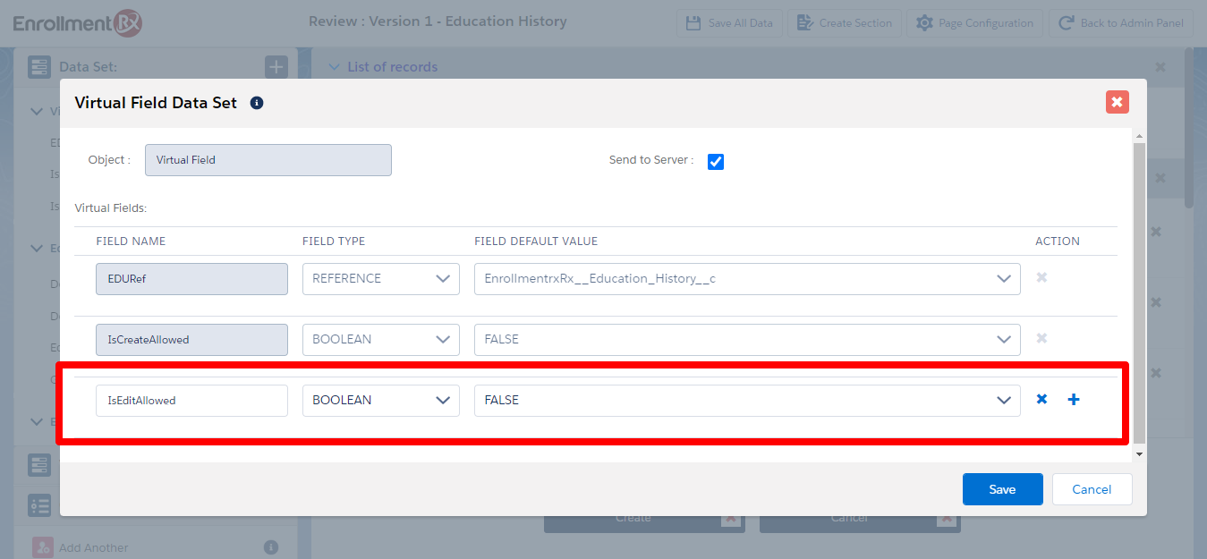 - Click on the Add/Edit button of the Virtual Field on the Data Set section