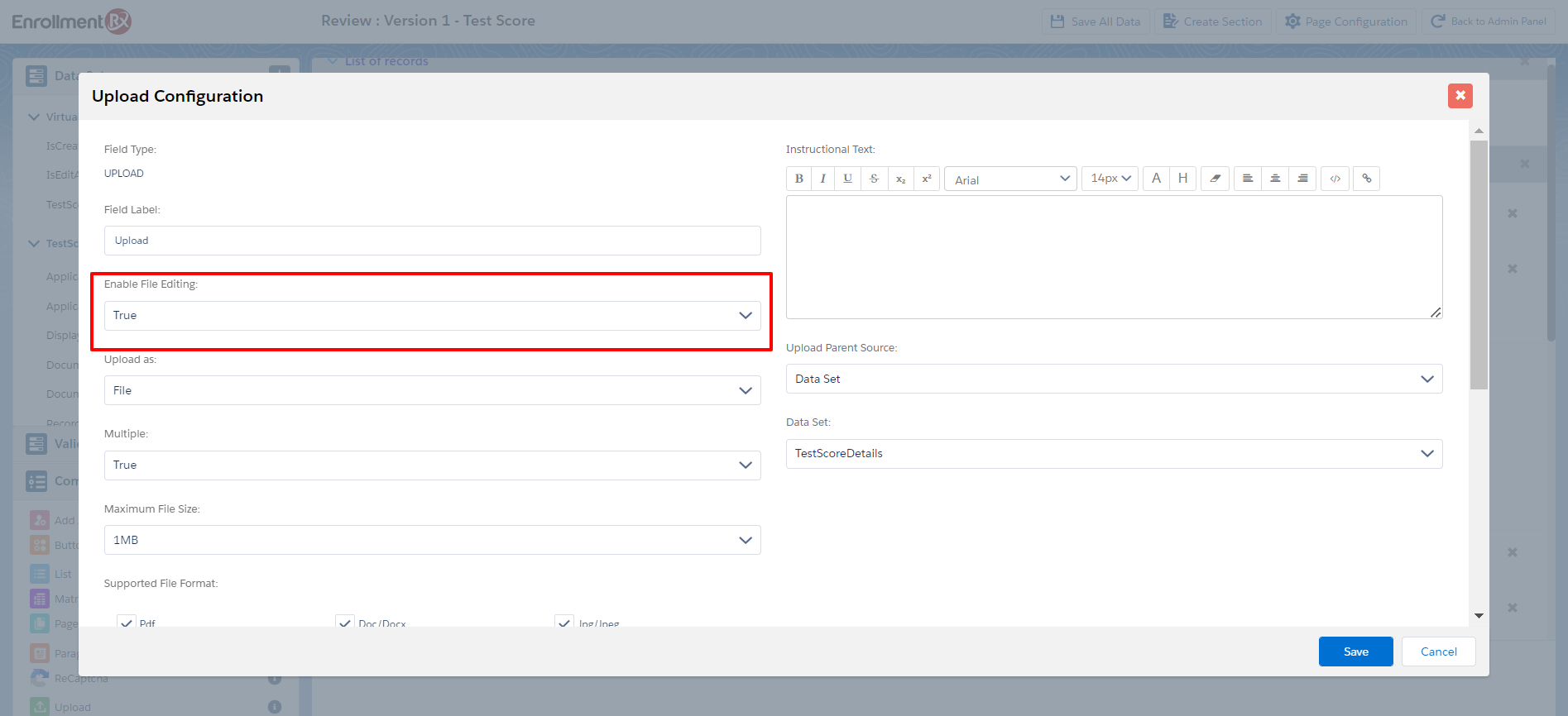 - Set the "Enable File Editing" field value to true. If this field value is false, then