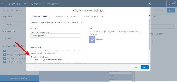 Step 3: Create a New Custom Page with the Label 'review_application'