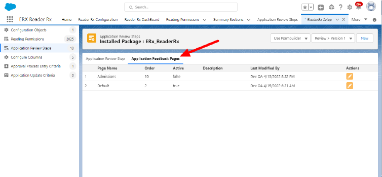 - Navigate to the Reader Rx Setup tab and click on the "Application Review Step" component