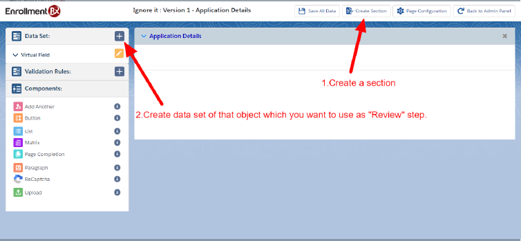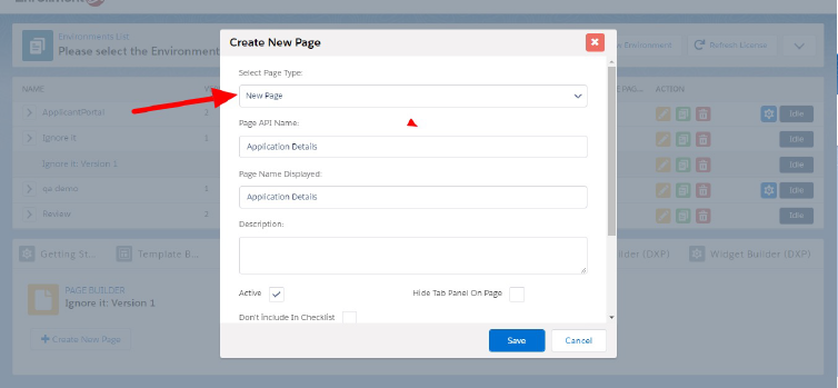 All of the pages created under the “SF Platform” environment will be shown at the Application Review Step tab whenever the user selects “Use FormBuilder."