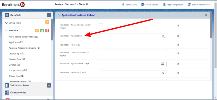 - Drop the "DXP RFeedbackApp" component on the page layout and select the