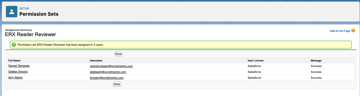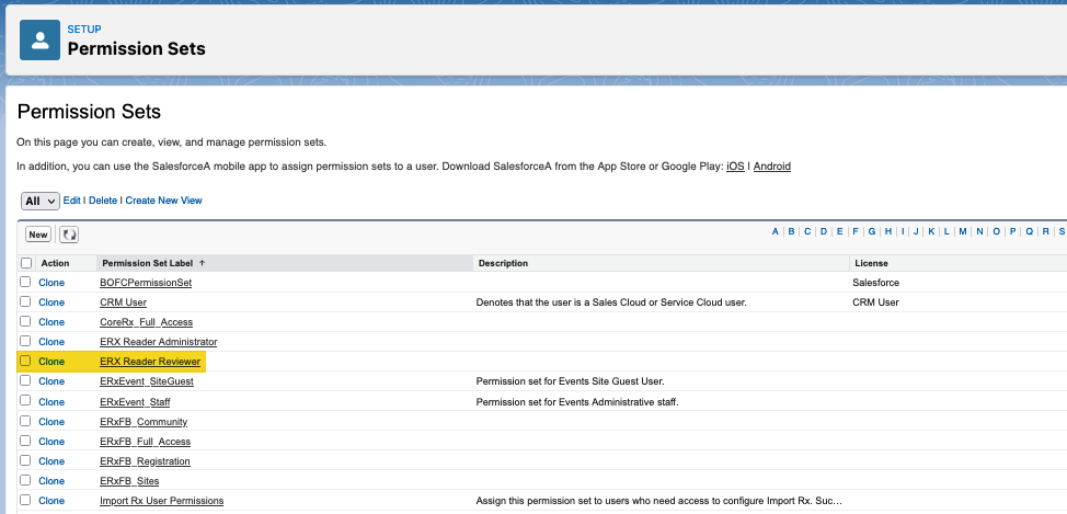 - ERX Reader Reviewer — This permission set can be leveraged to provide Reader permissions to your reviewers.