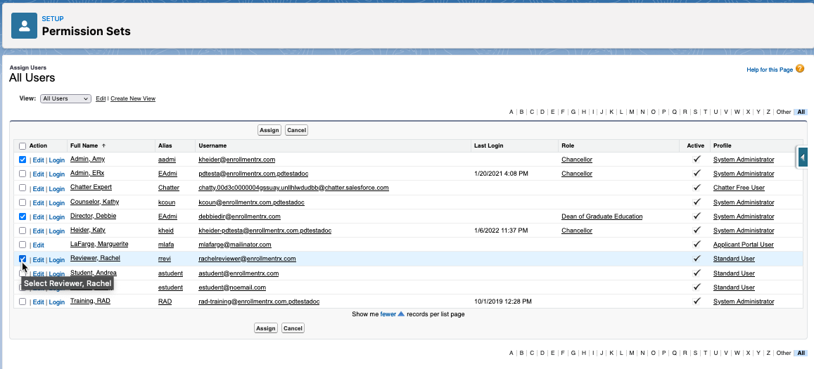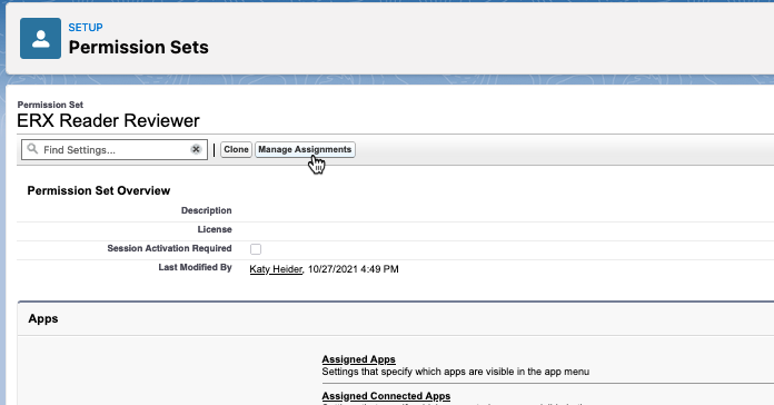 The steps below use "ERX Reader Reviewer" as an example, but the process is the same for both of the Reader Rx permission sets.