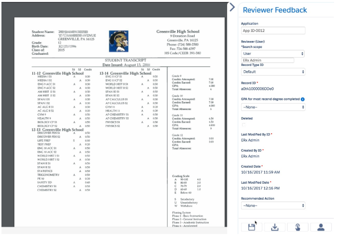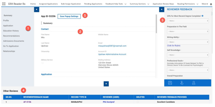 - The leftmost popout Navigation panel shows all the steps configured through “Application Review Steps.”